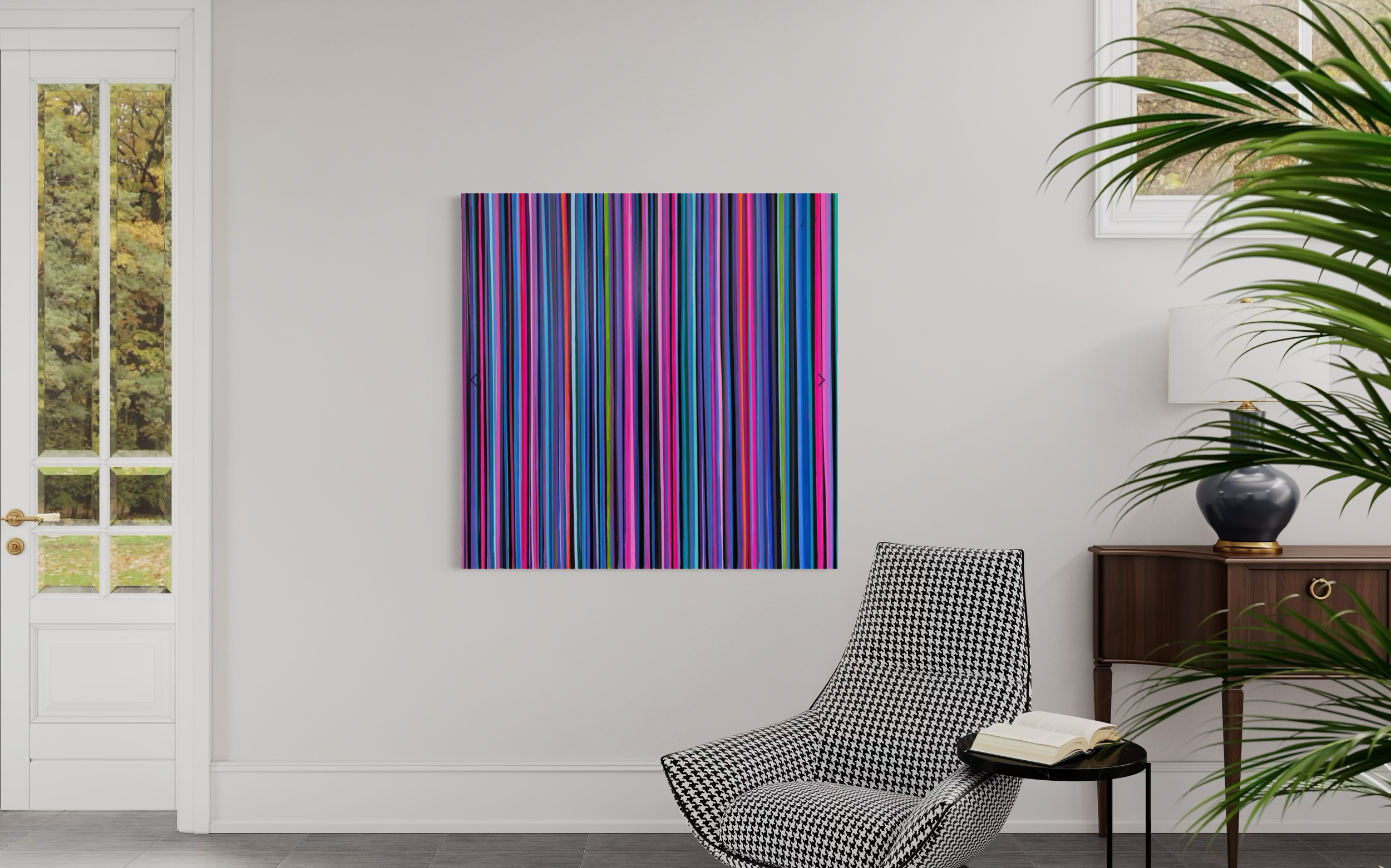 Add instant energy to your home with this vibrant 20x20 inch abstract painting. Colorful POW bursts with bold stripes in pink, red, purple, yellow, and blue, radiating outward in a striking starburst design. This one-of-a-kind original artwork brings a modern, playful touch to any space — perfect for living rooms, offices, or gallery walls. Hand-painted and ready to hang, it’s a powerful statement piece for collectors who love contemporary and colorful wall art.