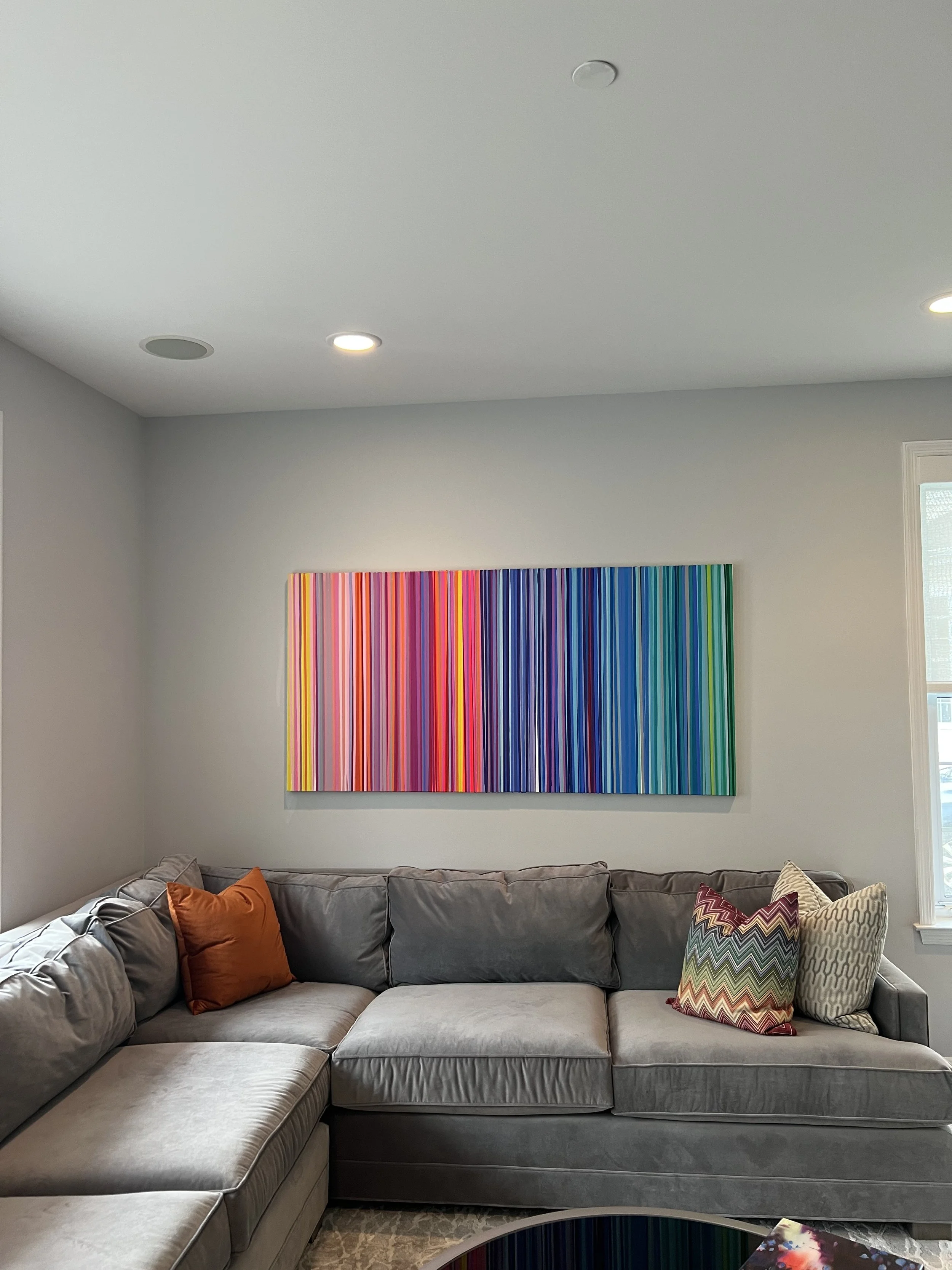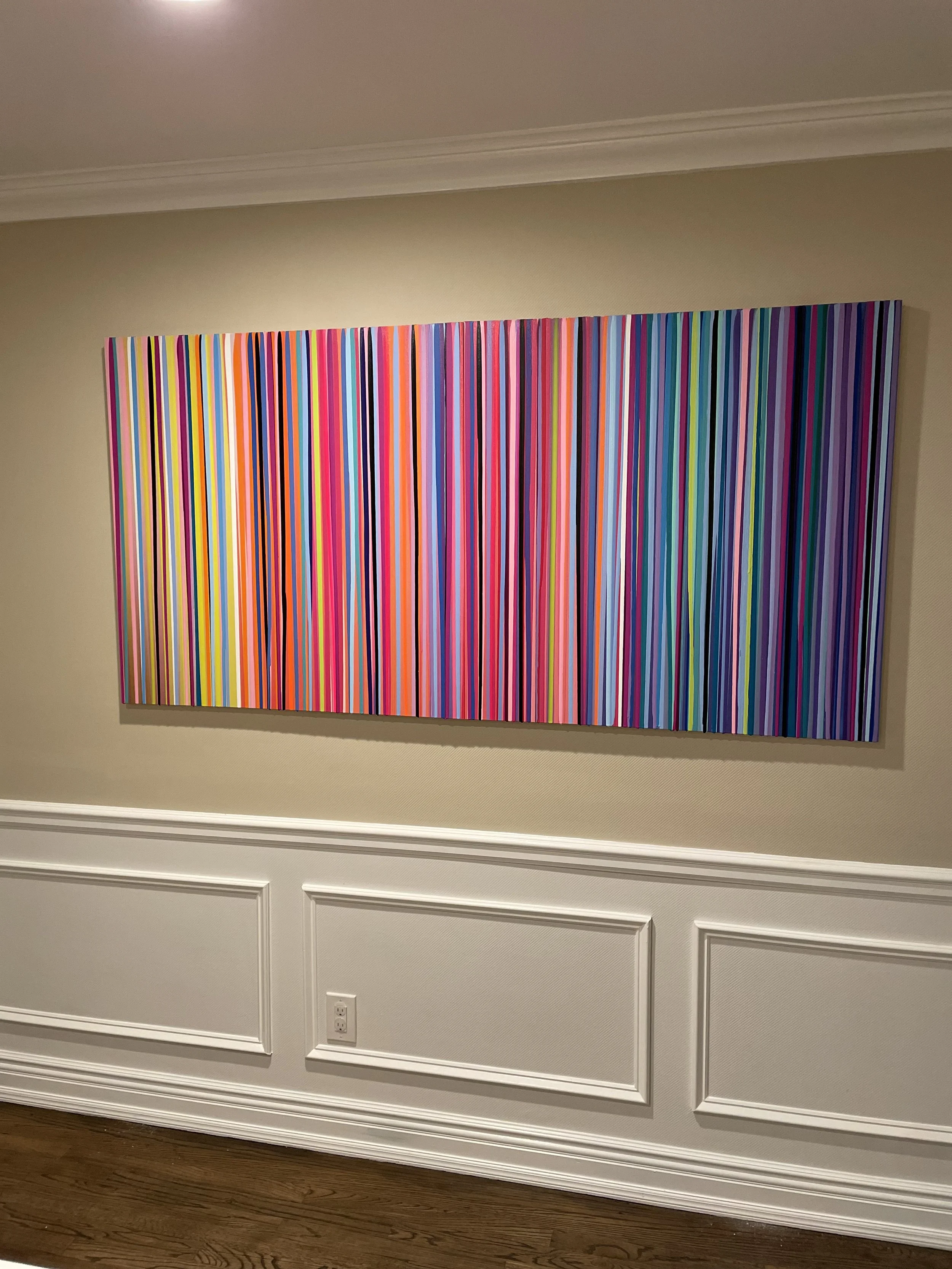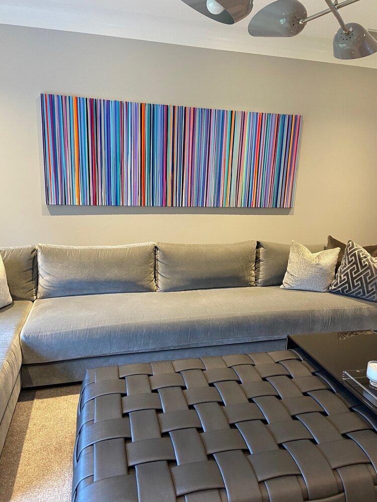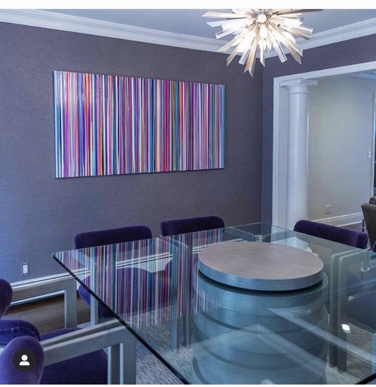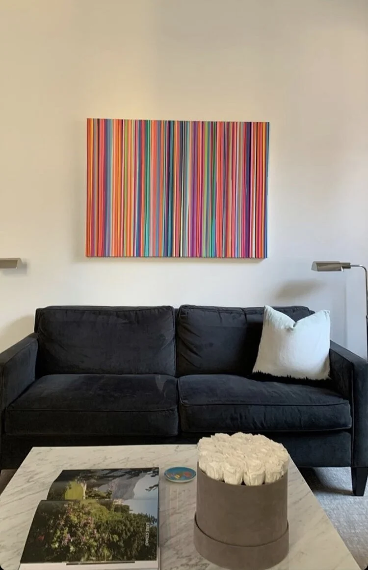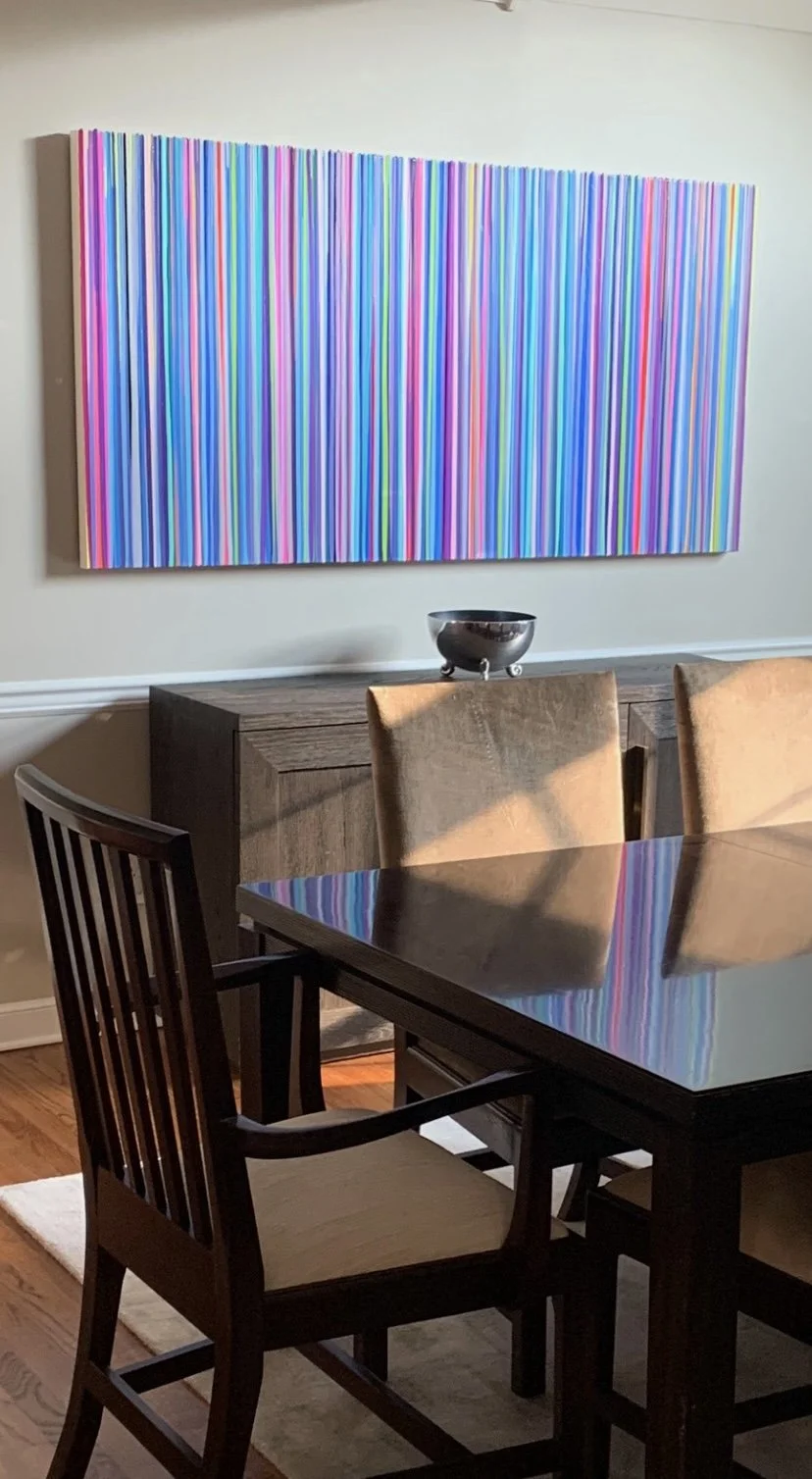 Discover how our original striped paintings and colorful abstract artworks transform homes across the United States. From modern living rooms and cozy bedrooms to bright dining areas and inspiring office spaces, each installation shows how art can bring warmth, energy, and personality into any environment. Browse the gallery below to see real collectors’ spaces and imagine how a custom piece can elevate your own home.