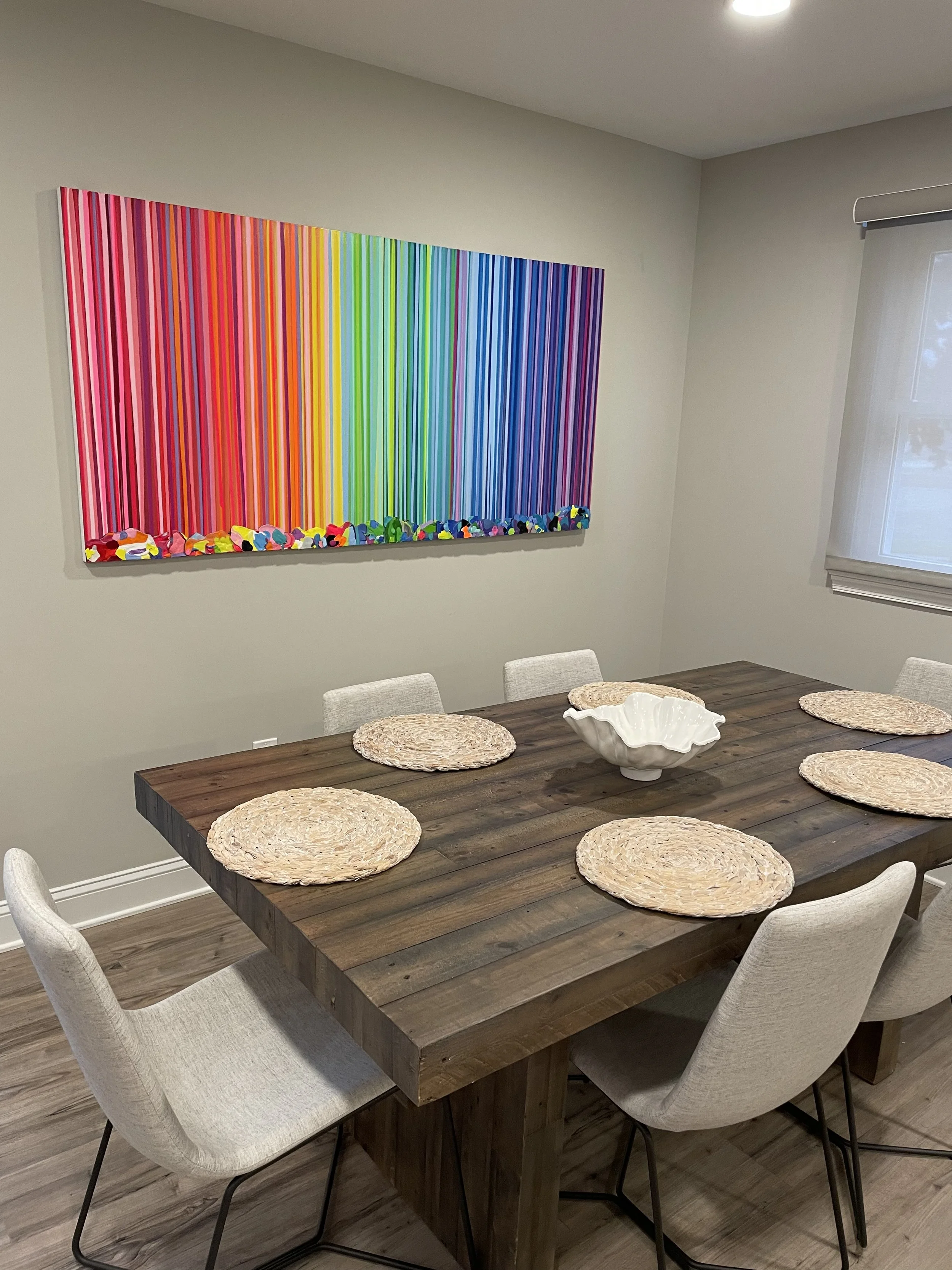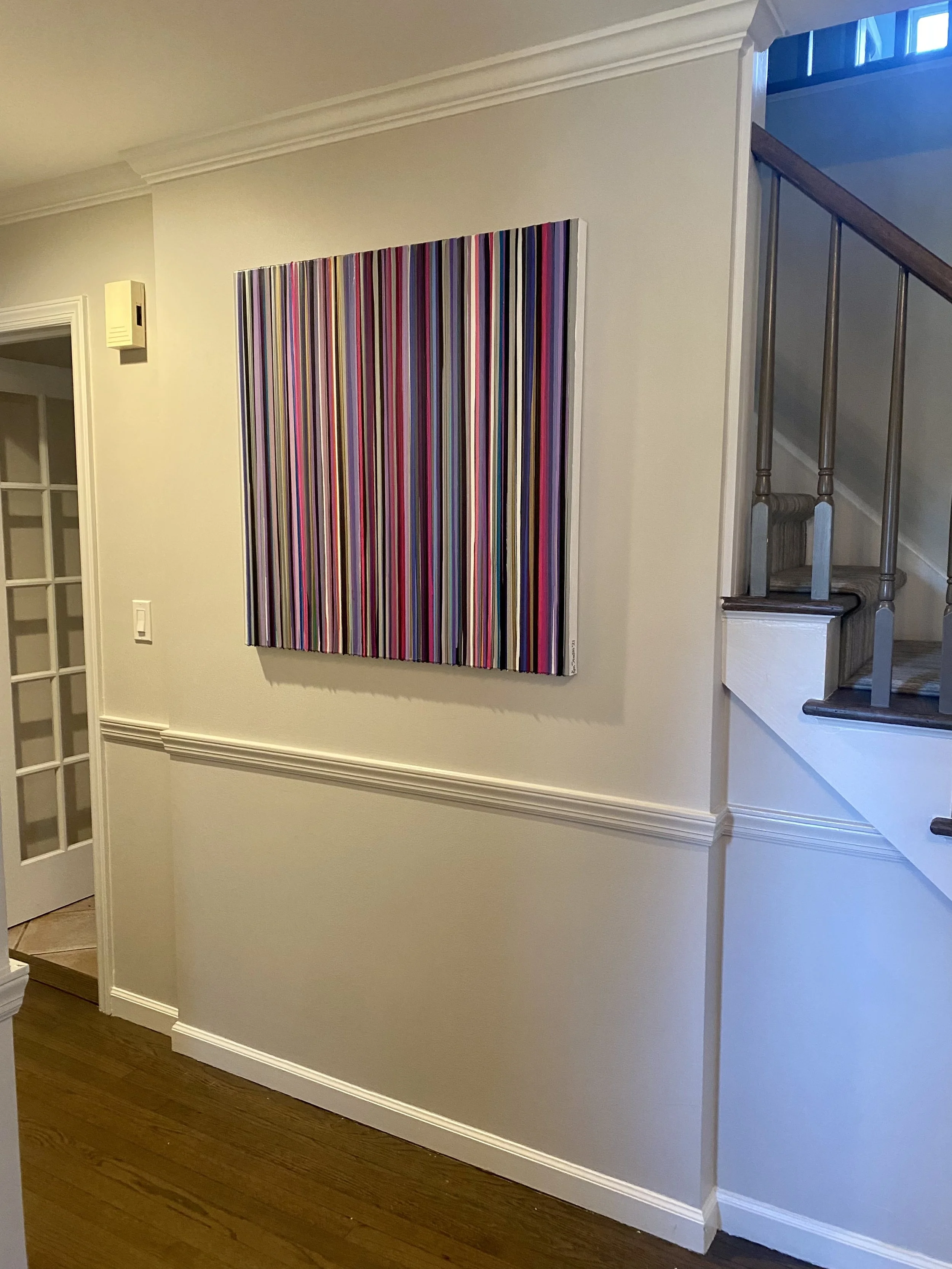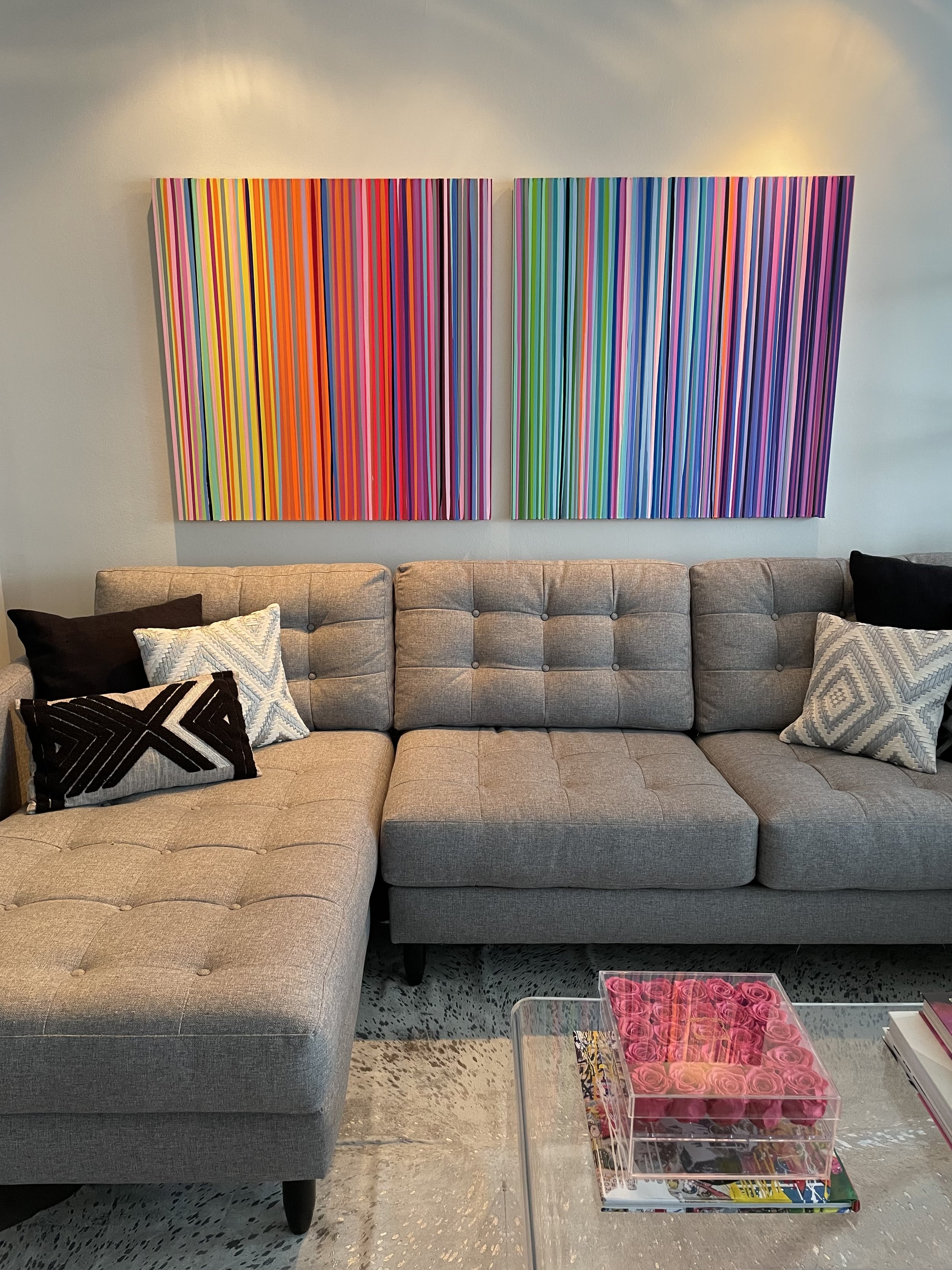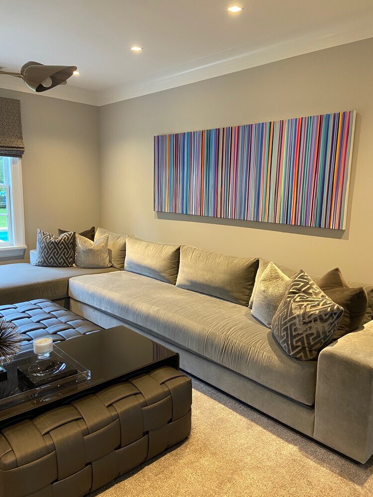Discover how our original striped paintings and colorful abstract artworks transform homes across the United States. From modern living rooms and cozy bedrooms to bright dining areas and inspiring office spaces, each installation shows how art can bring warmth, energy, and personality into any environment. Browse the gallery below to see real collectors’ spaces and imagine how a custom piece can elevate your own home.