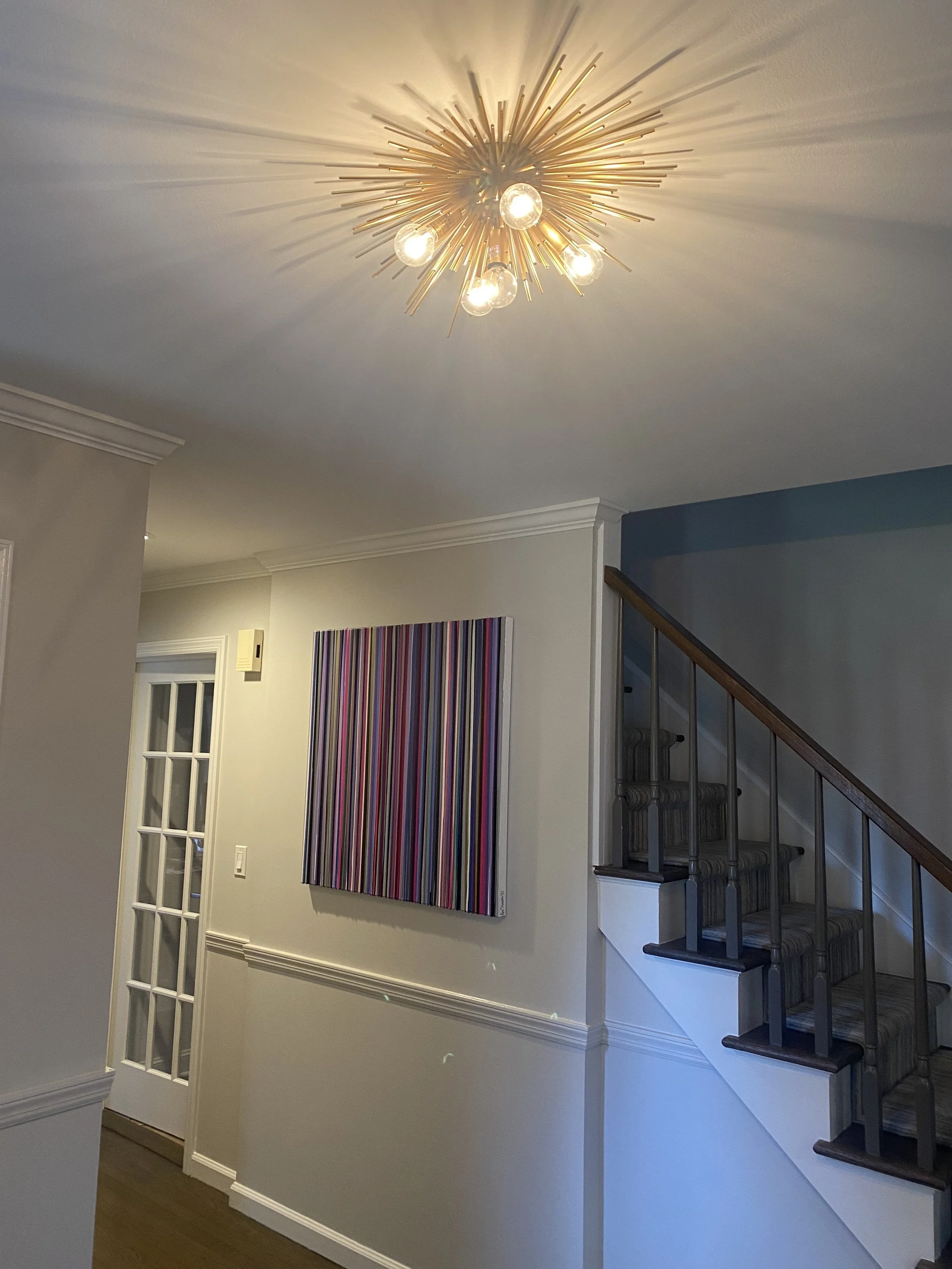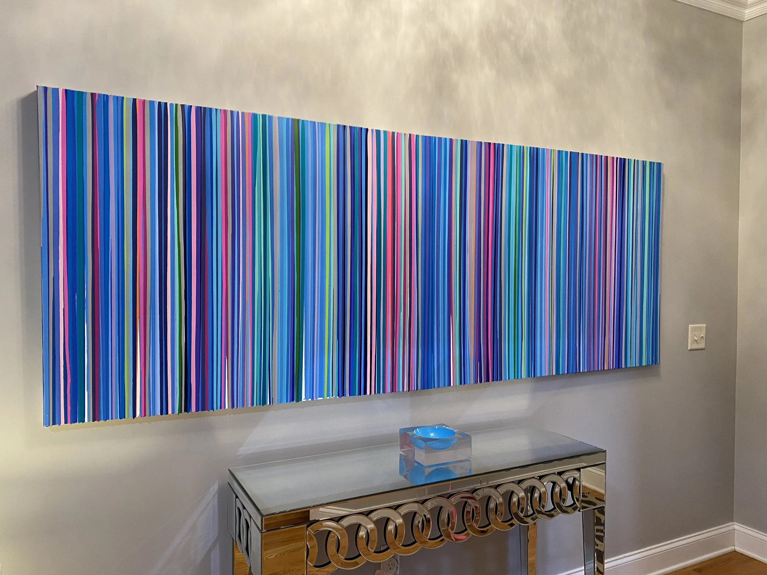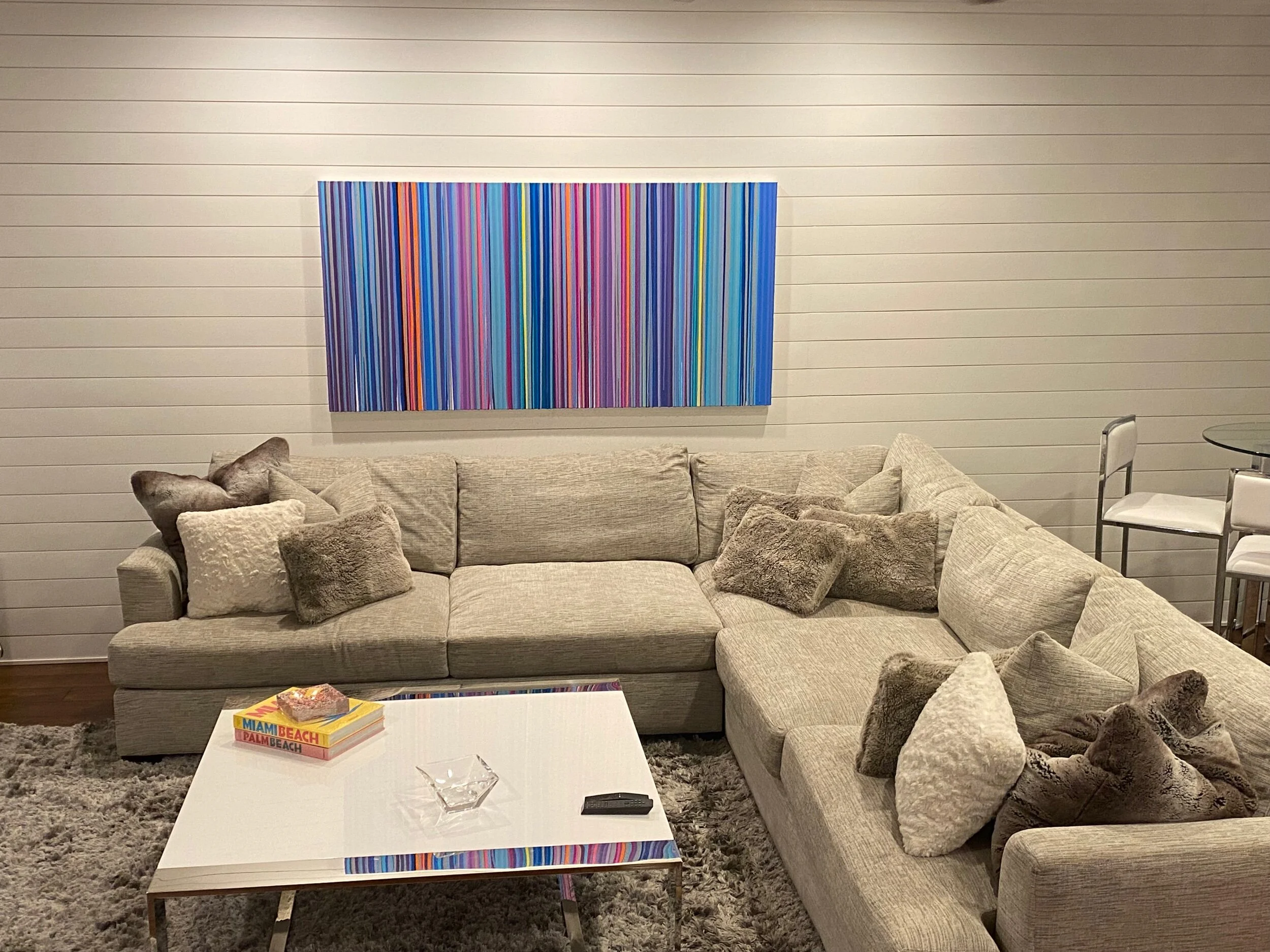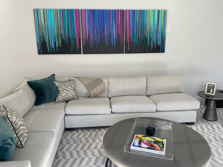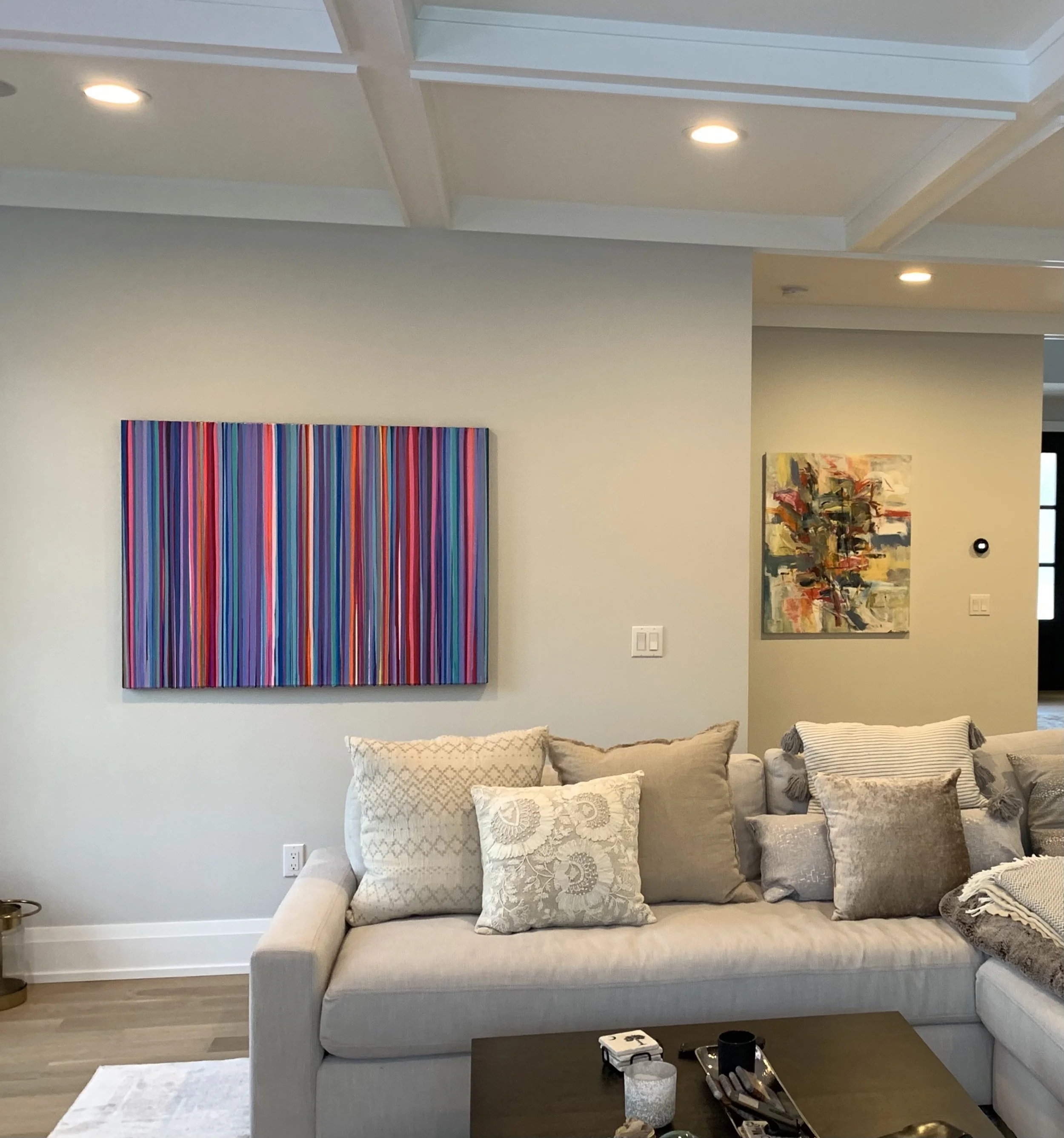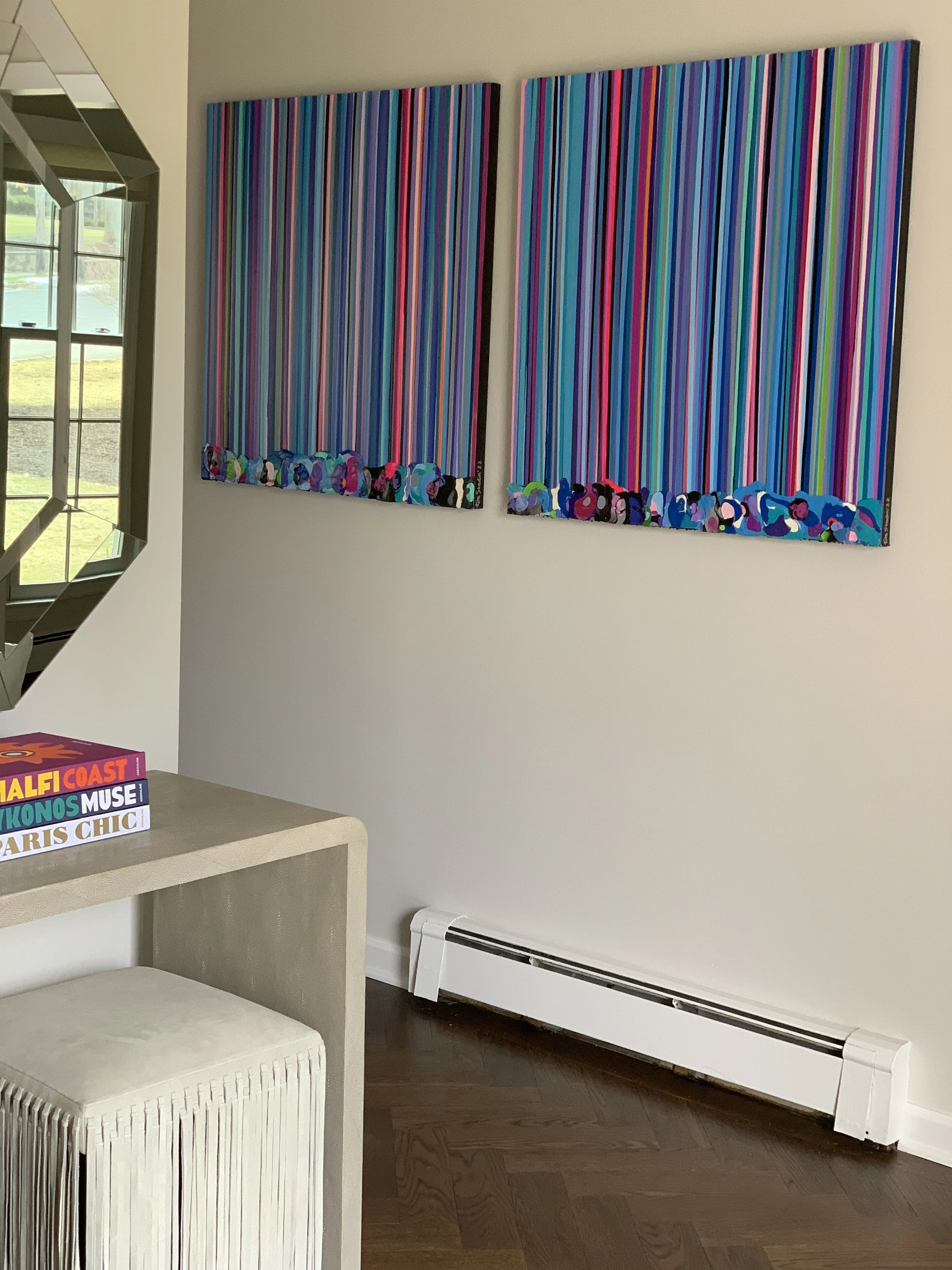 Discover how our original striped paintings and colorful abstract artworks transform homes across the United States. From modern living rooms and cozy bedrooms to bright dining areas and inspiring office spaces, each installation shows how art can bring warmth, energy, and personality into any environment. Browse the gallery below to see real collectors’ spaces and imagine how a custom piece can elevate your own home.