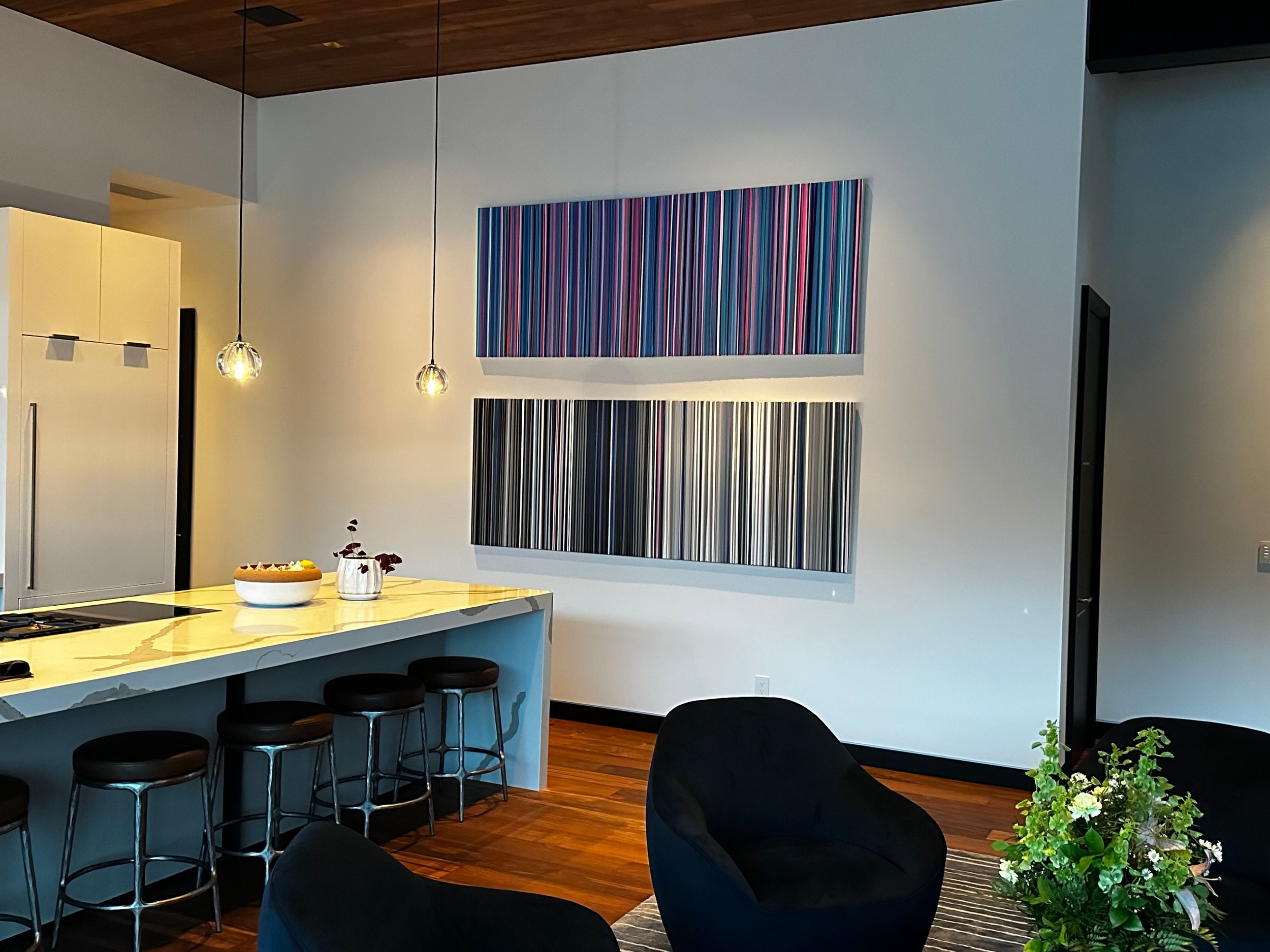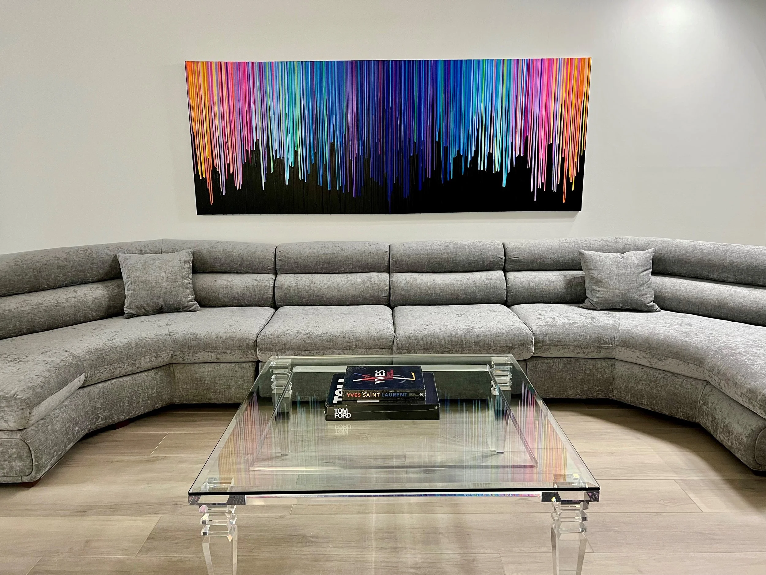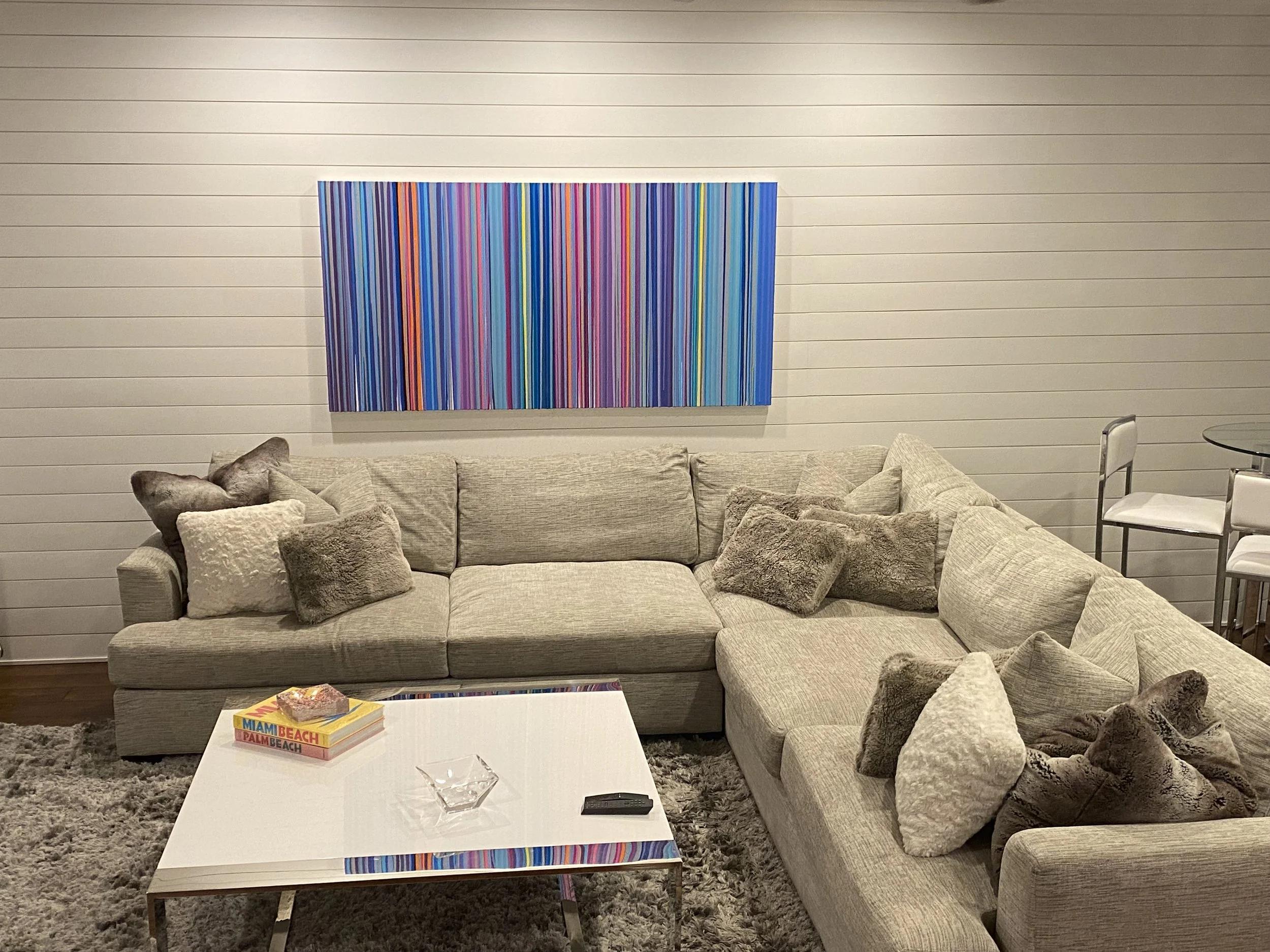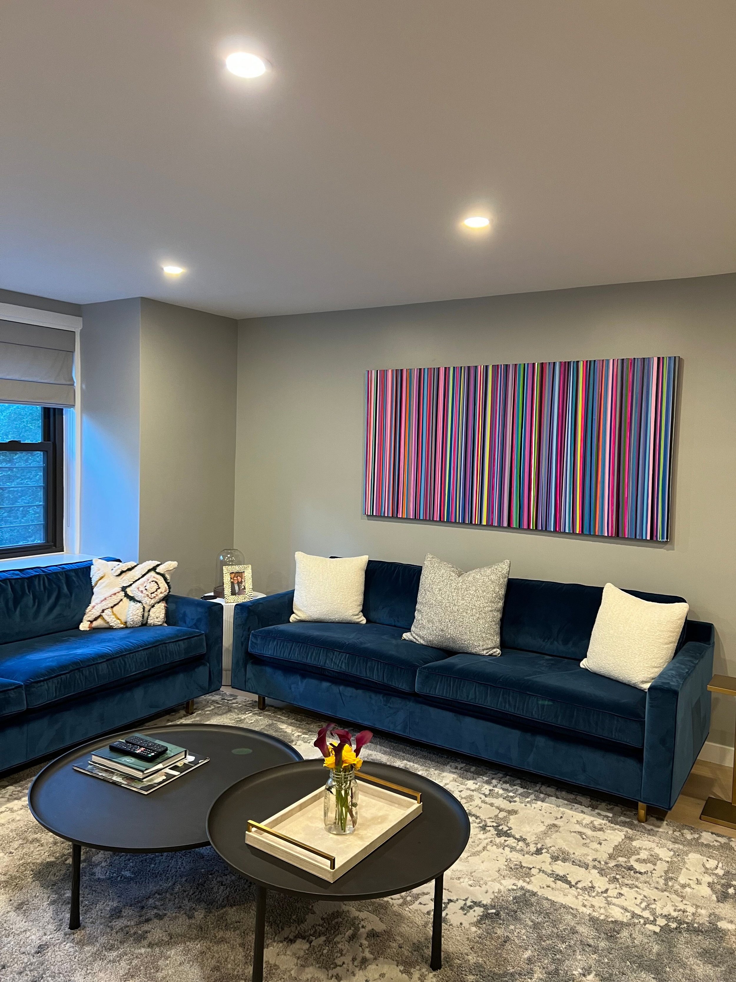 Discover how our original striped paintings and colorful abstract artworks transform homes across the United States. From modern living rooms and cozy bedrooms to bright dining areas and inspiring office spaces, each installation shows how art can bring warmth, energy, and personality into any environment. Browse the gallery below to see real collectors’ spaces and imagine how a custom piece can elevate your own home.