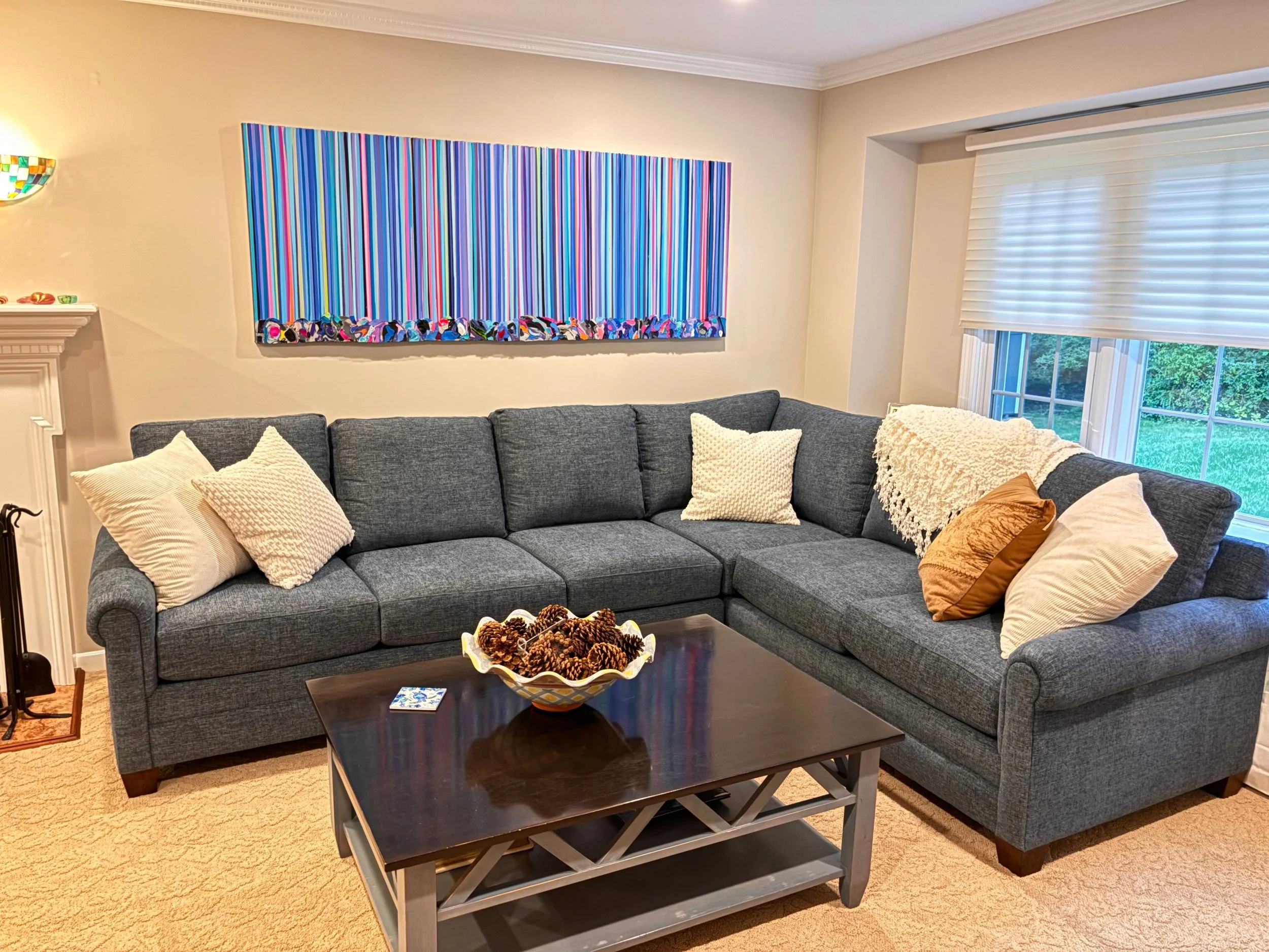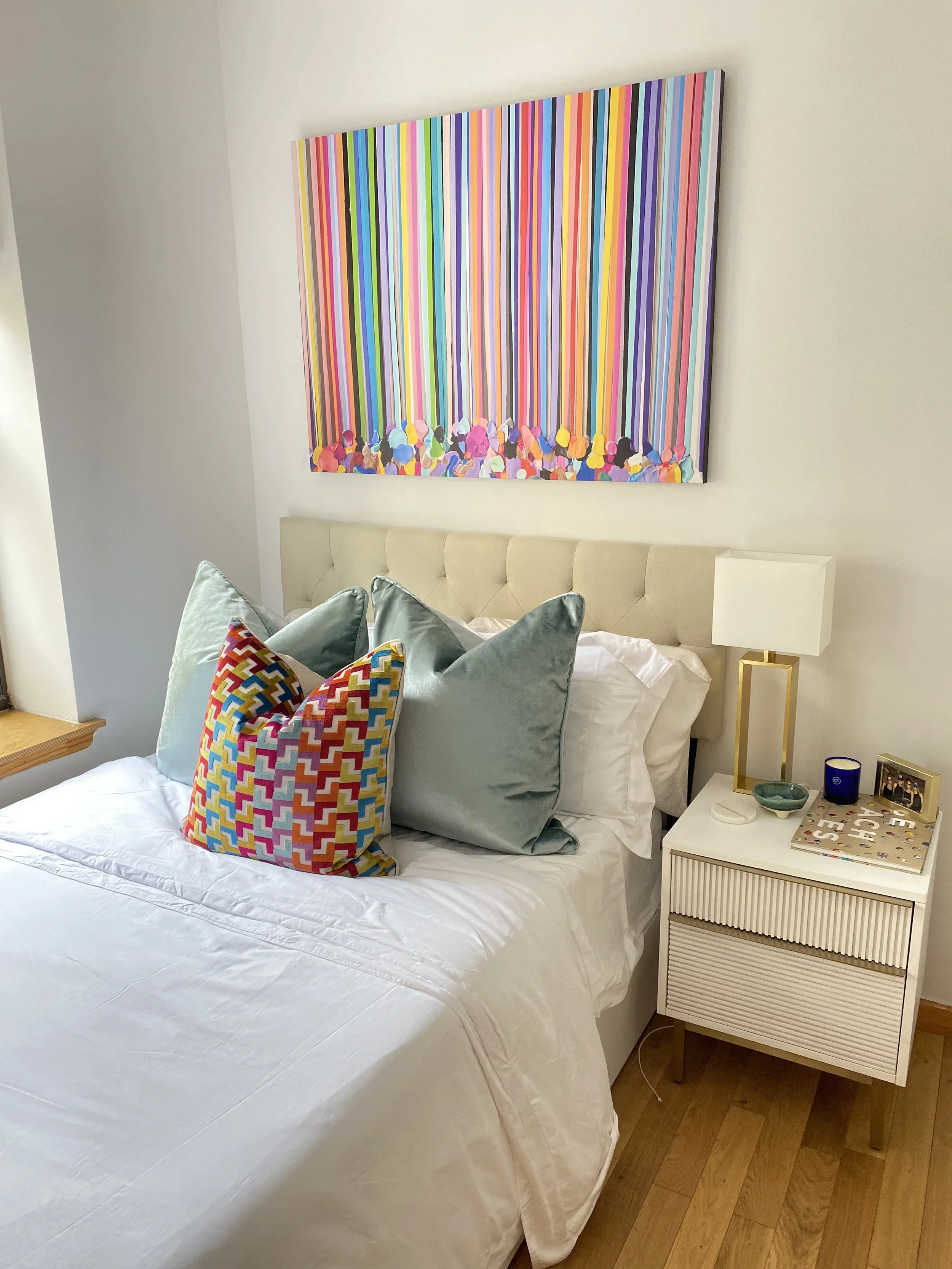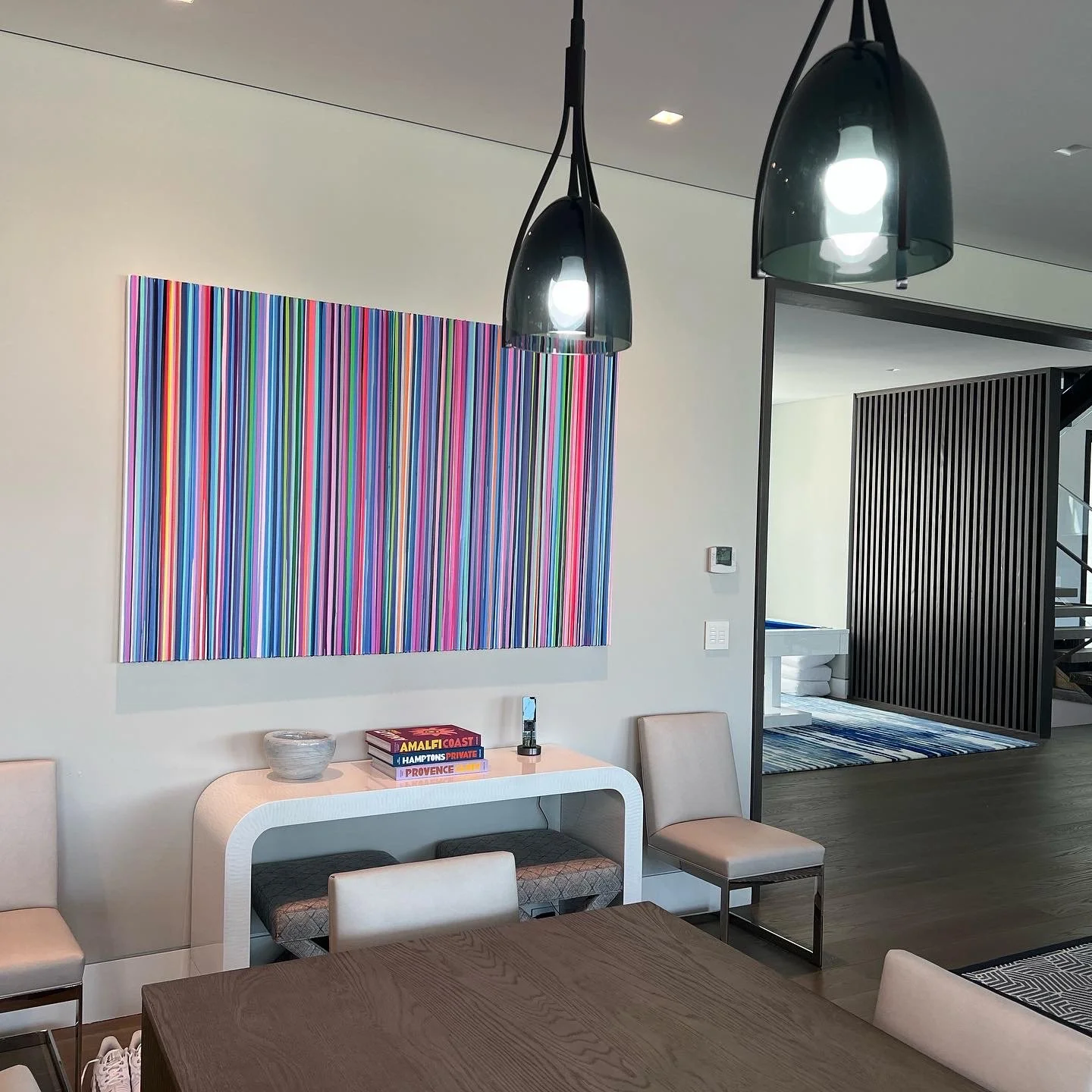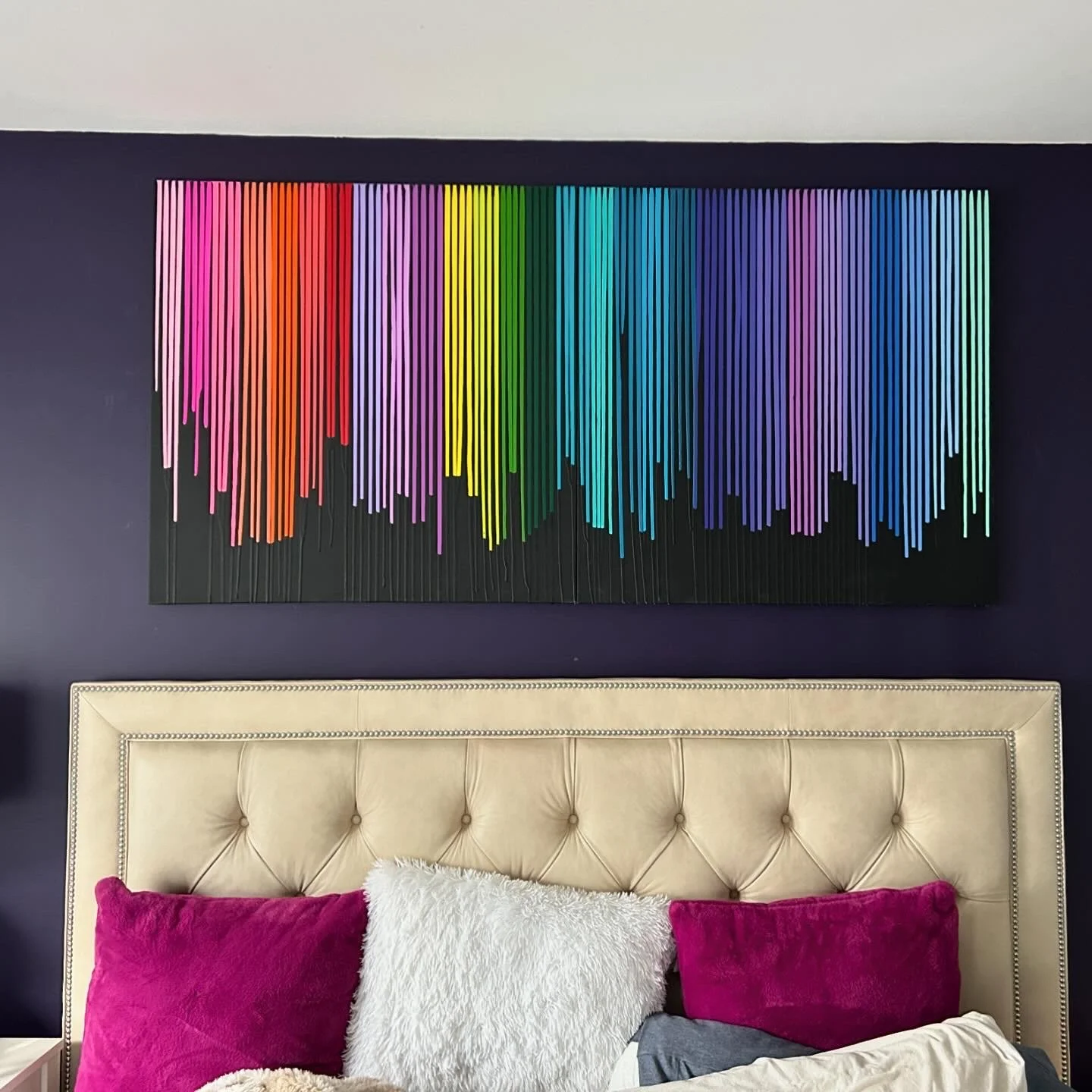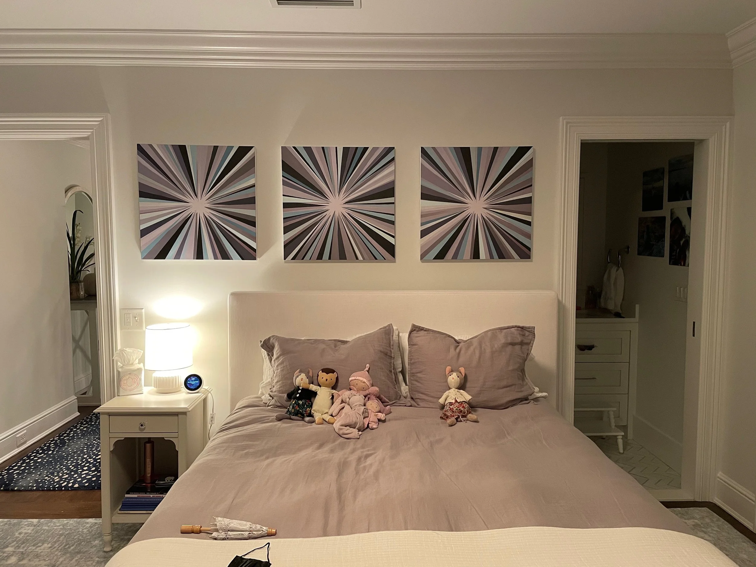 Discover how our original striped paintings and colorful abstract artworks transform homes across the United States. From modern living rooms and cozy bedrooms to bright dining areas and inspiring office spaces, each installation shows how art can bring warmth, energy, and personality into any environment. Browse the gallery below to see real collectors’ spaces and imagine how a custom piece can elevate your own home.