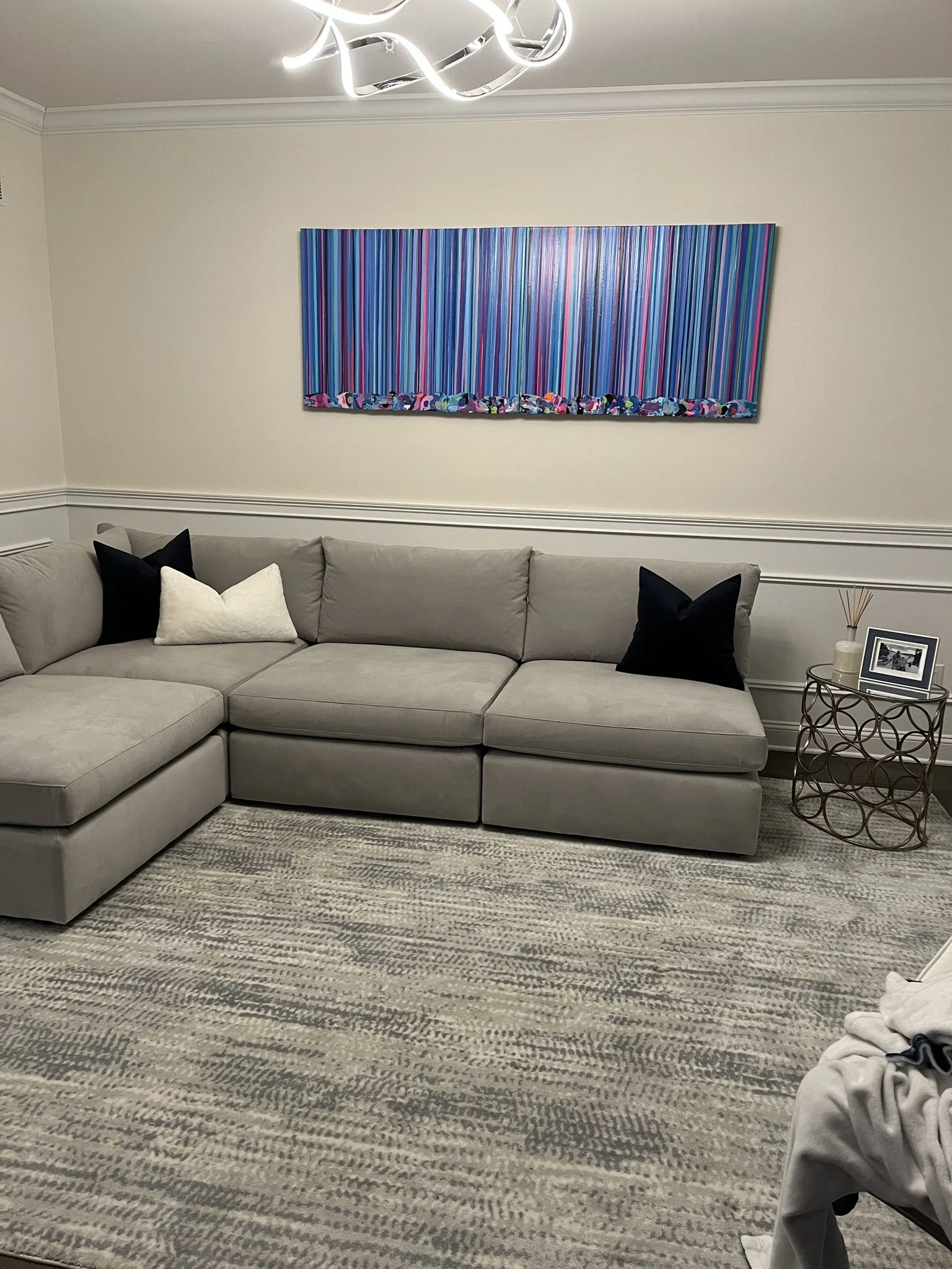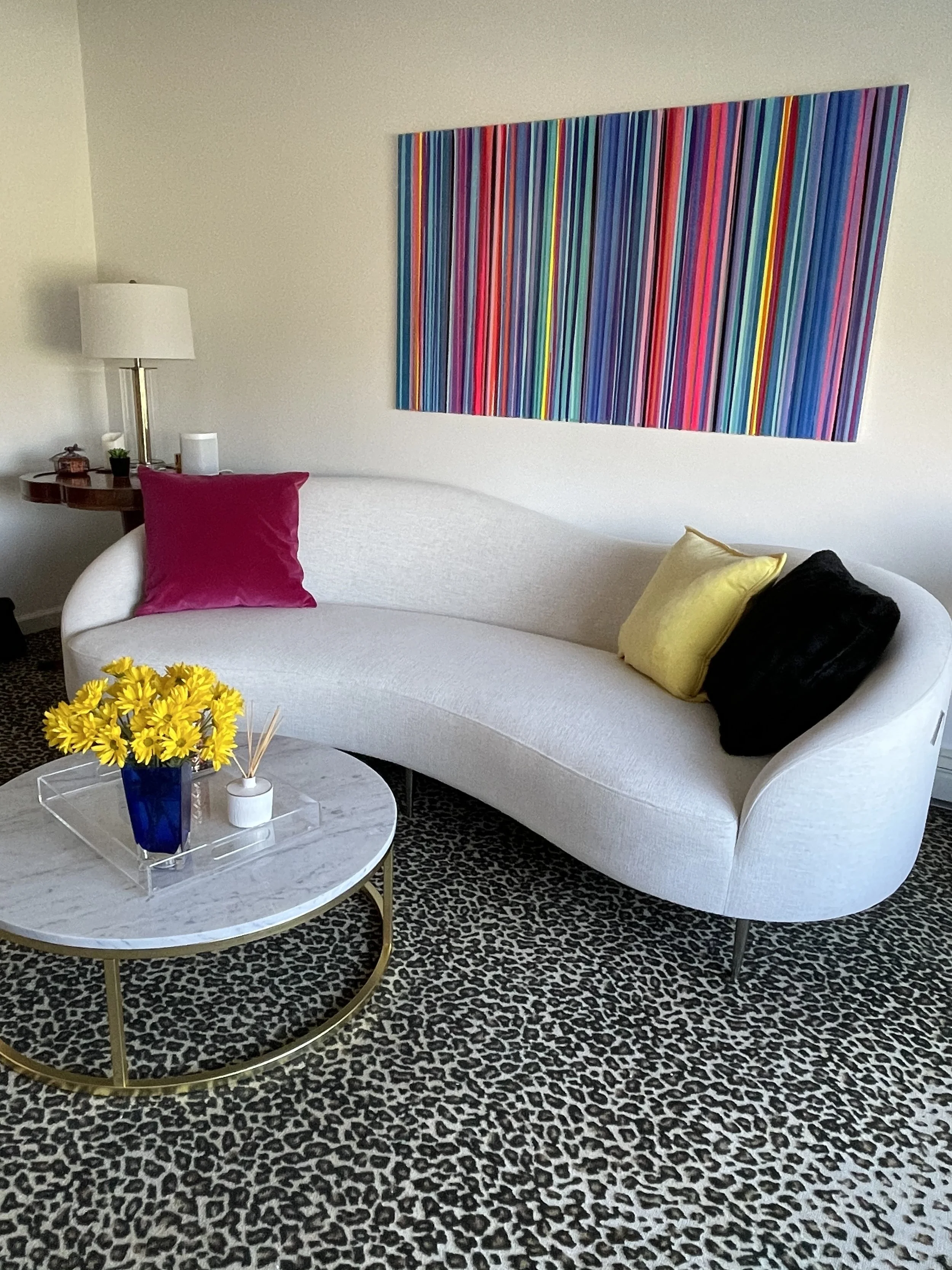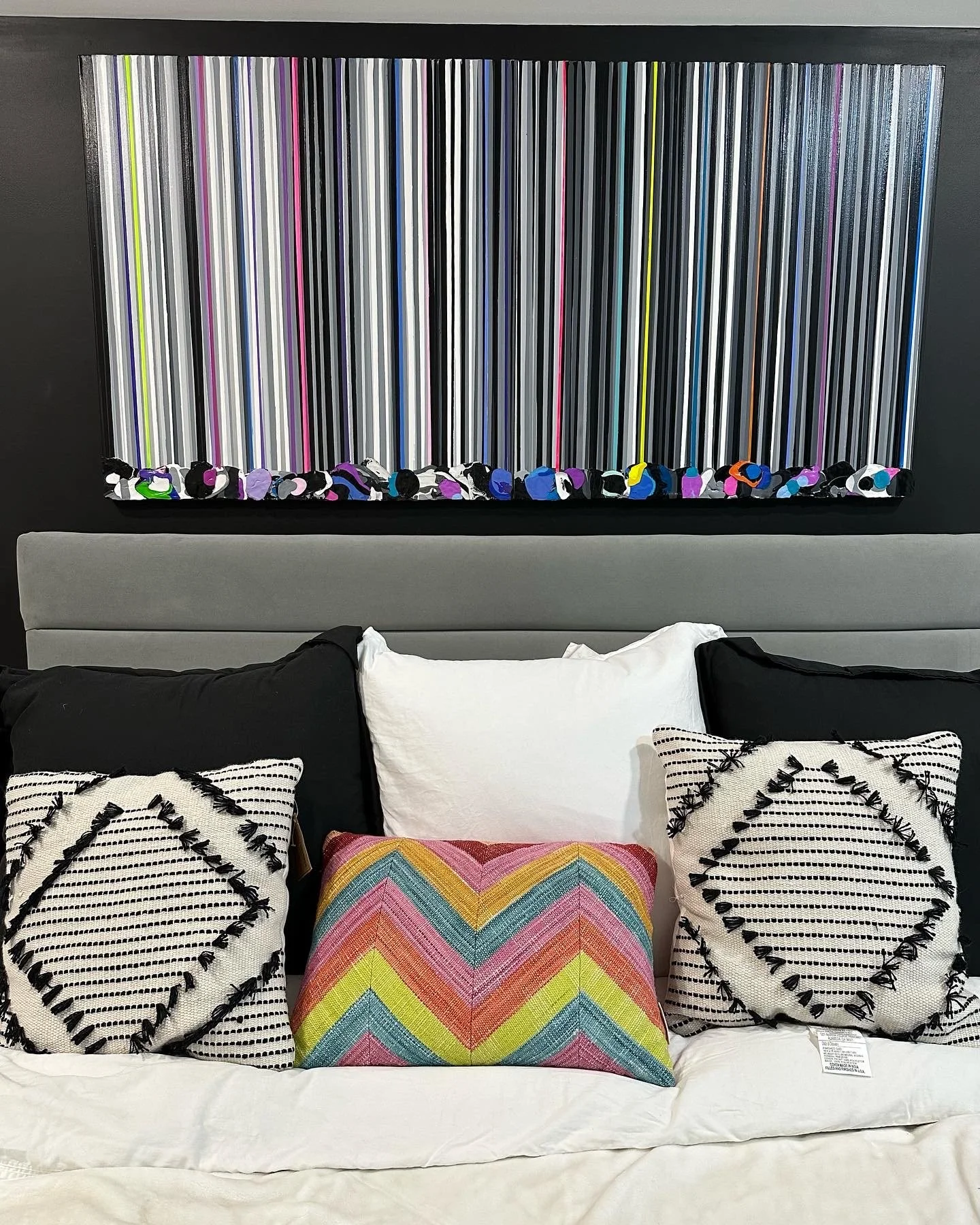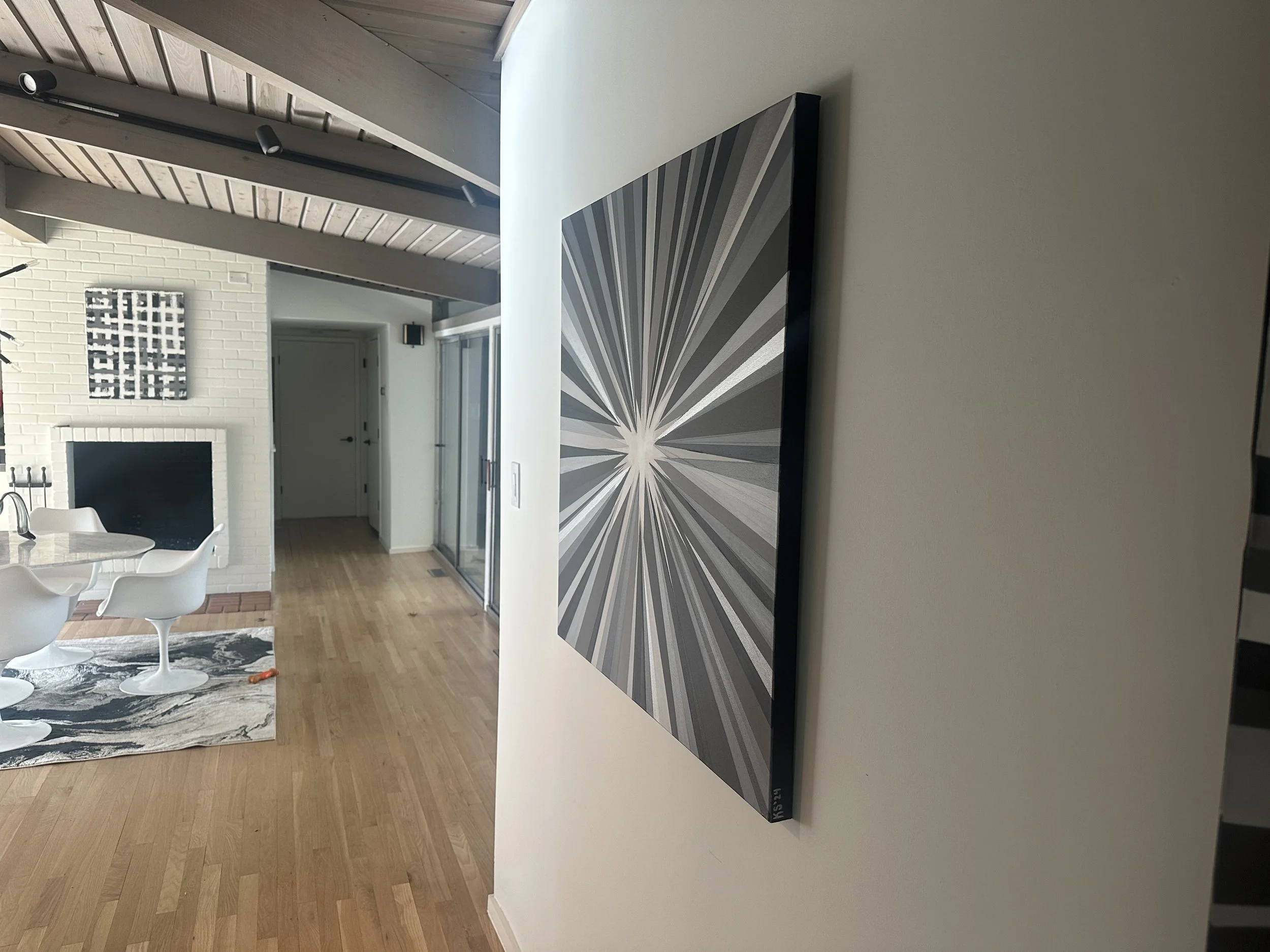Discover how our original striped paintings and colorful abstract artworks transform homes across the United States. From modern living rooms and cozy bedrooms to bright dining areas and inspiring office spaces, each installation shows how art can bring warmth, energy, and personality into any environment. Browse the gallery below to see real collectors’ spaces and imagine how a custom piece can elevate your own home.